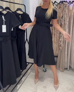 Robe En Dentelle Scintillante À Manches Courtes Et Coupe A
