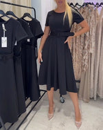 Robe Élégante Manche à Volants Strass Thermo Appliqué Robe Droit