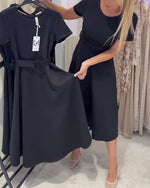 Une robe stylée unie patchwork et plissée