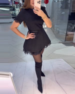 Robe Avec Détail en Dentelle, Décolleté en V Et Design Plissé, Ambiance Élégante
