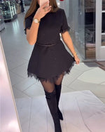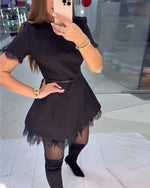 Robe Élégante Manche à Volants Strass Thermo Appliqué Robe Droit