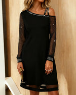 Robe Élégante Manche à Volants Strass Thermo Appliqué Robe Droit