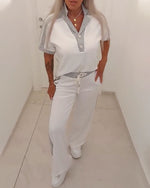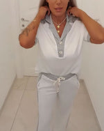 Ensemble Lin Col Collier Sans Manches Pantalon Large