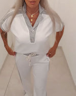 Chemise Encolure V À Un Rang Manche Courte