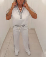 SPÉCIFICATIONS Style: Décontracté Type de la veste: Hauts Catégorie: Ensembles Matériel: Jean Type du dessin: Couleur pure Forme du col: Col en V Type de la manche: Manches régulières Longueur de la manche: Manches courtes Type du pantalon: Pantalon droit Longueur du pantalon: Long Type de la taille: Taille moyenne Type d'ajustement: Habituel ...