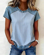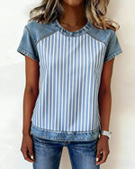 SPÉCIFICATIONS Type de la veste: T-shirt Style: Décontracté Matériel: Jean Occasion: Quotidien Forme du col: Col rond Type du dessin: Plaid Type de la manche: Manches régulières Longueur de la manche: Manches courtes Type d'ajustement: Habituel Saison: Printemps,Été Contenu du colis: 1 x T-shirt TABLEAU DES TAILLES (cm) Taille Tour de poitri...