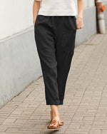 Pantalon décontracté en coton et lin pour femme