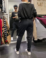 Pantalon droit décontracté de couleur unie avec poche zippée