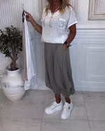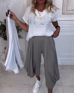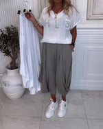 Pantalon Décontracté Fuselé Coton Et Lin Court