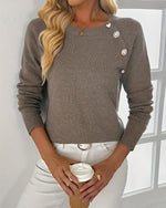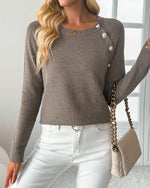 Pull tendance à boutons et col rond de couleur unie