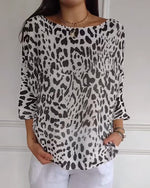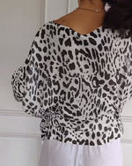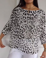 Pull Col En V Imprimé Léopard Contraste