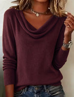 Pull décontracté col rond manches longues couleur unie