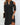 Robe élégante en cuir à manches longues et col en V avec lacets