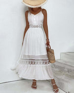 SPÉCIFICATIONS Style: Vacances, Bohème, Élégant Matériel: Coton Type de la robe: Robe à fines bretelles Longueur de la robe: Longueur du genou Forme du col: Col en V Type du dessin: Couleur pure Longueur de la manche: Sans manches Détails: Broderie, Dentelle Type d'ajustement: Habituel Saison: Été Occasion: Vacance Contenu du colis: 1 x Robe ...