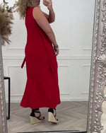 SPÉCIFICATIONS Style: Décontracté, Vacances Matériel: Mélange de coton Type de la robe: A-Line Longueur de la robe: Midi Forme du col: Col rond Type du dessin: Impression Longueur de la manche: Sans manches Type d'ajustement: Habituel Saison: Été Occasion: Quotidien, Vacance Contenu du colis: 1 x Robe TABLEAU DES TAILLES (cm) Taill...