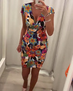 Robe élégante imprimée à manches mi-longues et décolleté en V