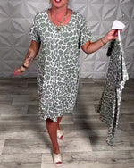 Robe élégante à imprimé léopard et col en V