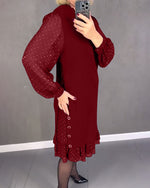 SPÉCIFICATIONS Style: Décontracté Matériel: Mélange de coton Type de la robe: Robe jambe droite Longueur de la robe: Midi Forme du col: Col rond Type du dessin: Couleur pure Type de la manche: Manches à gigot Longueur de la manche: Manches longues Détails: Dentelle Type d'ajustement: Ample Saison: Automne,Hiver Occasion: Quotidien,Faire la fêt...