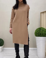 Robe pull décontractée à manches longues et col montant de couleur unie