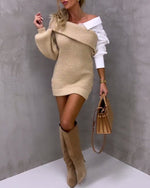SPÉCIFICATIONS Catégorie: Robes pull Style: Décontracté, Entreprise Matériel: Acrylique, Élasthanne, Fibre polyester Forme du col: Col rond Type du dessin: Couleur pure Type de la manche: Manches d'épaule tombées Type de la robe: Robe jambe droite Longueur de la robe: Longueur du genou Longueur de la manche: Manches longues Détails: Tricot de...