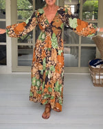 SPÉCIFICATIONS Style: Désirable Matériel: Mélange de coton Type de la robe: A-Line Longueur de la robe: Maxi Forme du col: Col en V Type du dessin: Impression Type de la manche: Manches bouffantes Longueur de la manche: Manches longues Détails: Lacet,Fente Type d'ajustement: Habituel Saison: Printemps,Automne Occasion: Quotidien Contenu du col...