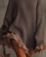 Robe Col Rond Patchwork De Dentelle Loose