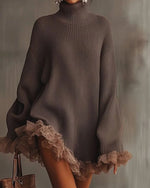 SPÉCIFICATIONS Style: Chic Matériel: Dentelle,Tricotage Type de la robe: A-Line Longueur de la robe: Au-dessus du genou Forme du col: Col rond Type de la manche: Manches bouffantes Longueur de la manche: Manches longues Détails: Couture de matériau,Creusé Type d'ajustement: Habituel Saison: Automne,Hiver Occasion: Quotidien Contenu du colis: 1...