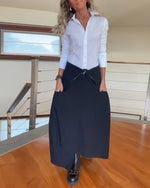 SPÉCIFICATIONS Style: Décontracté Matériel: Mélange de coton Type de la robe: Robe jambe droite Longueur de la robe: Midi Forme du col: Col à revers Type du dessin: Couleur pure Type de la manche: Manches régulières Longueur de la manche: Manches longues Détails: Couture de matériau,Boutons Type d'ajustement: Habituel Saison: Automne,Hiver Occ...