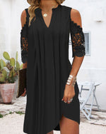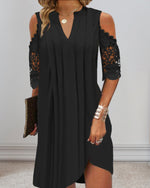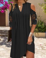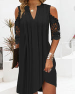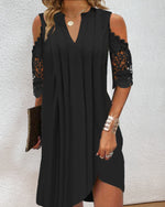 Robe Avec Détail en Dentelle, Décolleté en V Et Design Plissé, Ambiance Élégante
