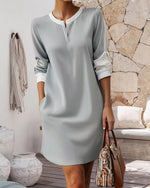 Robe Unie À Manches Longues Avec Détails Patchwork