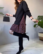 Robe Manches Longues À Patchwork Et Pied-De-Poule