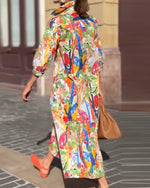 SPÉCIFICATIONS Style: Décontracté Matériel: Mélange de coton Type de la robe: A-Line Longueur de la robe: Midi Forme du col: Col à revers Type du dessin: Impression Type de la manche: Manches régulières Longueur de la manche: Manches neuf points Type d'ajustement: Habituel Saison: Printemps,Été Occasion: Quotidien Contenu du colis: 1 x Robe TA...