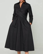 SPÉCIFICATIONS Style: Décontracté Matériel: Mélange de coton Type de la robe: Robe jambe droite Longueur de la robe: Midi Forme du col: Col à revers Type du dessin: Couleur pure Type de la manche: Manches régulières Longueur de la manche: Manches longues Détails: Couture de matériau,Boutons Type d'ajustement: Habituel Saison: Automne,Hiver Occ...