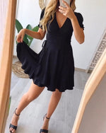SPÉCIFICATIONS Style: Décontracté Matériel: Mélange de coton Type de la robe: A-Line Longueur de la robe: Au-dessus du genou Forme du col: Col en V Type du dessin: Paillettes,Couleur pure Type de la manche: Manches à volants Longueur de la manche: Manches longues Détails: Volants Type d'ajustement: Ample Saison: Automne,Hiver Occasion: Quotidi...