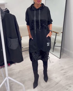 Robe Col Rond Manches Longues À Paillettes Patchwork