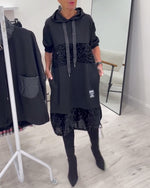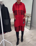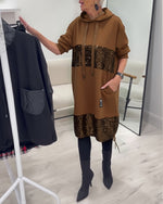 Robe À Capuche Denim Patchwork Épaule Tombante