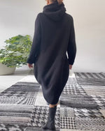SPÉCIFICATIONS Style: Décontracté Matériel: Velours Type de la robe: Robe jambe droite Longueur de la robe: Longueur du genou Forme du col: Col roulé Type du dessin: Couleur pure Type de la manche: Manches régulières Longueur de la manche: Manches longues Détails: Poche Type d'ajustement: Habituel Saison: Automne,Hiver Occasion: Quotidien Con...