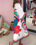 SPÉCIFICATIONS Style: Désirable Matériel: Mélange de coton Type de la robe: A-Line Longueur de la robe: Maxi Forme du col: Col en V Type du dessin: Impression Type de la manche: Manches bouffantes Longueur de la manche: Manches longues Détails: Lacet,Fente Type d'ajustement: Habituel Saison: Printemps,Automne Occasion: Quotidien Contenu du col...