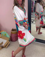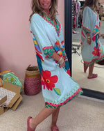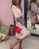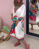SPÉCIFICATIONS Style: Décontracté Matériel: Mélange de coton Type de la robe: Robe jambe droite Longueur de la robe: Maxi Forme du col: Col en V Type du dessin: Impression Longueur de la manche: Manches 3/4 Détails: Poche,Froncé Type d'ajustement: Habituel Saison: Printemps,Automne,Hiver Occasion: Quotidien Contenu du colis: 1 x Robe TABLEAU D...