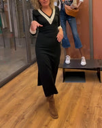 Robe à col V et manches 3/4