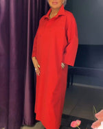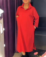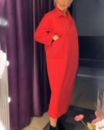SPÉCIFICATIONS Style: Décontracté Matériel: Mélange de coton Type de la robe: Robe jambe droite Longueur de la robe: Midi Forme du col: Col à revers Type du dessin: Couleur pure Type de la manche: Manches régulières Longueur de la manche: Manches longues Détails: Couture de matériau,Boutons Type d'ajustement: Habituel Saison: Automne,Hiver Occ...