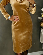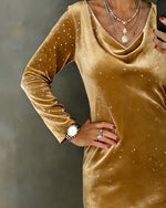 SPÉCIFICATIONS Style: Décontracté Matériel: Mélange de coton Type de la robe: Robe moulante Longueur de la robe: Au-dessus du genou Forme du col: Col Drapé Type du dessin: Paillettes,Couleur pure Type de la manche: Manches régulières Longueur de la manche: Manches longues Type d'ajustement: Habituel Saison: Automne,Hiver Occasion: Vacance Cont...