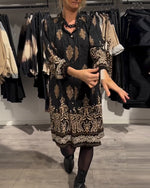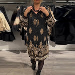 SPÉCIFICATIONS Style: Décontracté Matériel: Mélange de coton Type de la robe: Robe jambe droite Longueur de la robe: Maxi Forme du col: Col en V Type du dessin: Impression Longueur de la manche: Manches 3/4 Détails: Poche,Froncé Type d'ajustement: Habituel Saison: Printemps,Automne,Hiver Occasion: Quotidien Contenu du colis: 1 x Robe TABLEAU D...