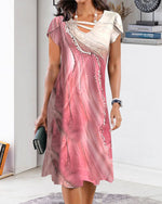 SPÉCIFICATIONS Style: Élégant,Faire la fête Matériel: Mélange de coton,Gaze Type de la robe: Robe jambe droite Longueur de la robe: Longueur du genou Forme du col: Col en V Type du dessin: Point Type de la manche: Manches bouffantes Longueur de la manche: Manches neuf points Détails: Couture de matériau,Poche Type d'ajustement: Habituel Saison...