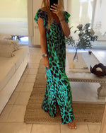 Robe camisole fendue en dentelle à imprimé renne tendance