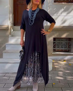 SPÉCIFICATIONS Style: Décontracté Matériel: Mélange de coton,Dentelle Type de la robe: Robe jambe droite Longueur de la robe: Maxi Forme du col: Col en V Type du dessin: Couleur pure Type de la manche: Manches évasées Longueur de la manche: Manches 3/4 Détails: Couture de matériau,Poche,Froncé Type d'ajustement: Habituel Saison: Printemps,Auto...