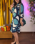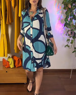SPÉCIFICATIONS Style: Décontracté Matériel: Mélange de coton Type de la robe: A-Line Longueur de la robe: Midi Forme du col: Col à revers Type du dessin: Impression Type de la manche: Manches régulières Longueur de la manche: Manches neuf points Type d'ajustement: Habituel Saison: Printemps,Été Occasion: Quotidien Contenu du colis: 1 x Robe TA...