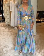 Robe à manches longues fendue boutonnée imprimée vintage