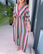 Robe à manches trois-quarts à col en V et imprimé patchwork coloré