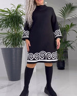 Robe Manches Longues À Patchwork Et Pied-De-Poule